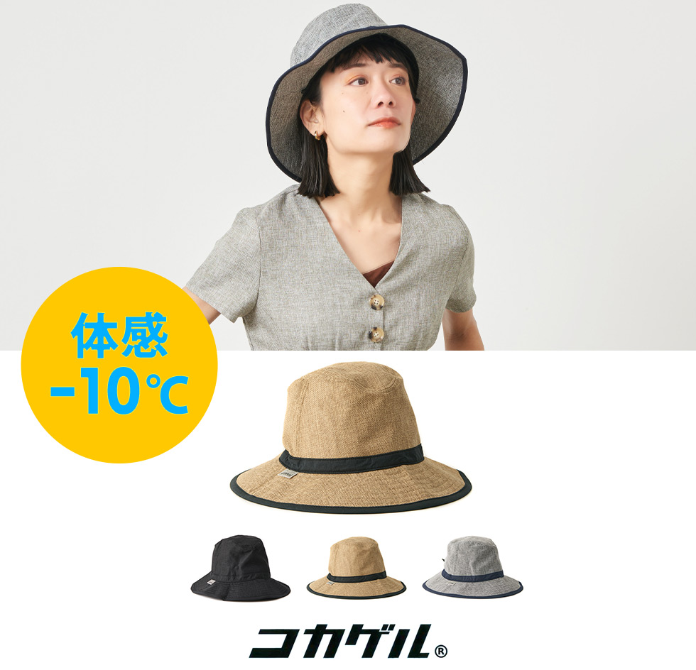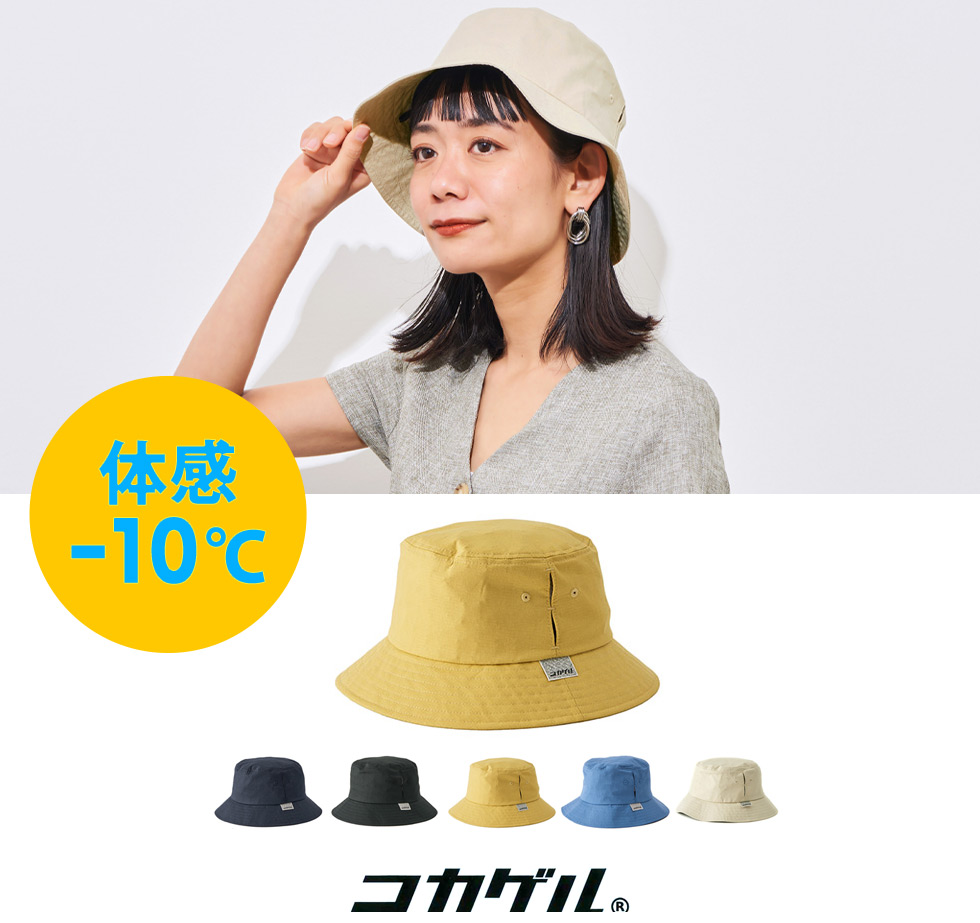 コカゲルにバケットハット登場。 名前の由来〈木陰にいるような涼しさ〉のとおり、 光だけじゃなく熱もはね返して体感温度がマイナス10℃になる帽子。