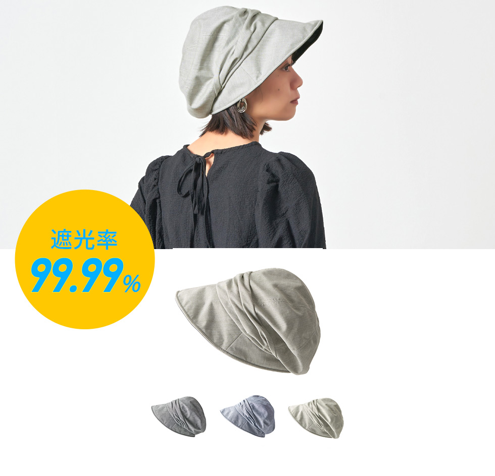 ツバ裏に遮光率99.99%の生地を使用することで紫外線対策もバッチリ!