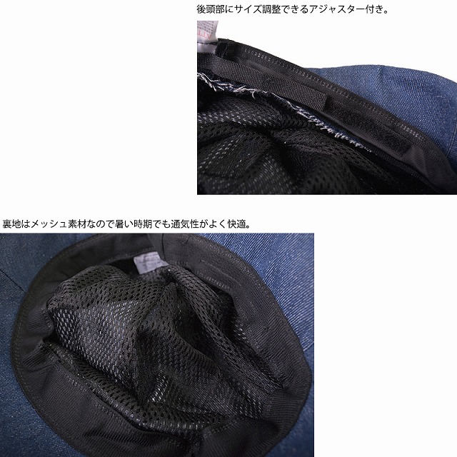 裏地はメッシュ素材なので暑い時期でも通気性がよく快適。