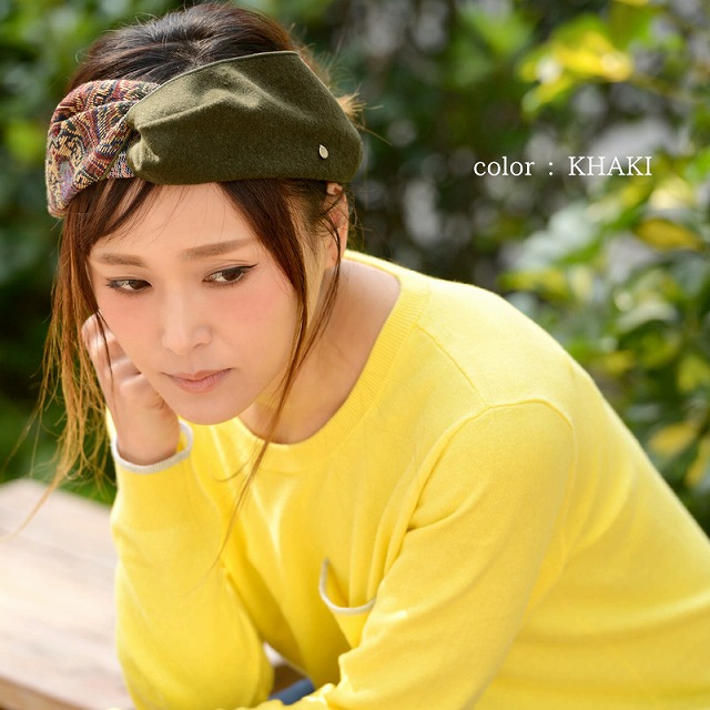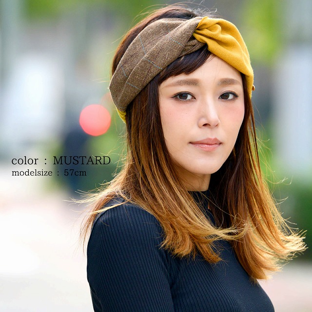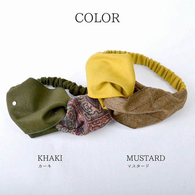 温かみのある冬の素材とゴブラン生地とヘリンボーン生地を組み合わせたオシャレなターバン。