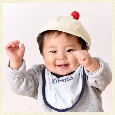 ベビーらしい色合いで、男の子から女の子までかぶれます。