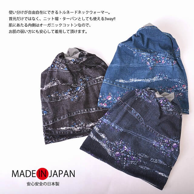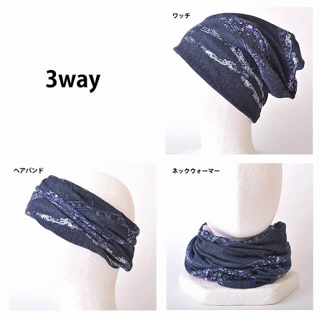 首元だけではなく、ニット帽・ターバンとしても使えます。