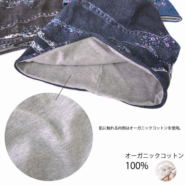 肌にあたる内側はオーガニックコットンなのでお肌の弱い方や抗がん剤の副作用により