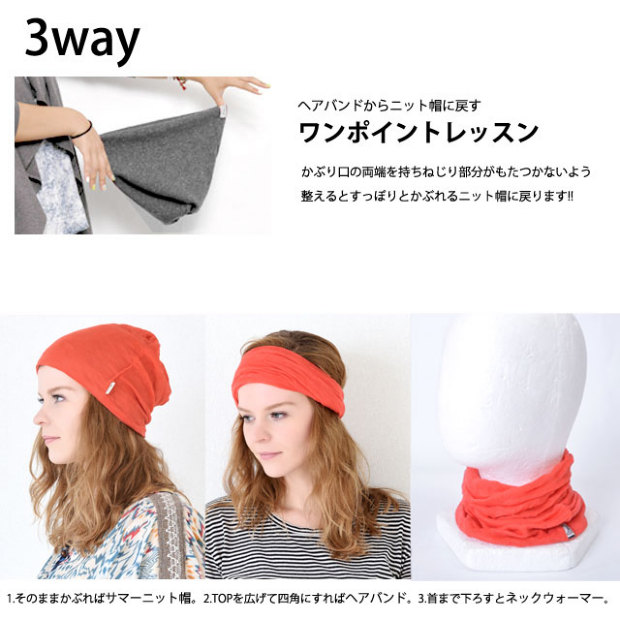 そのままかぶってワッチとしても、 筒状のTOPから”クシュ”っと縮めて ターバンとしても使える便利なアイテム。