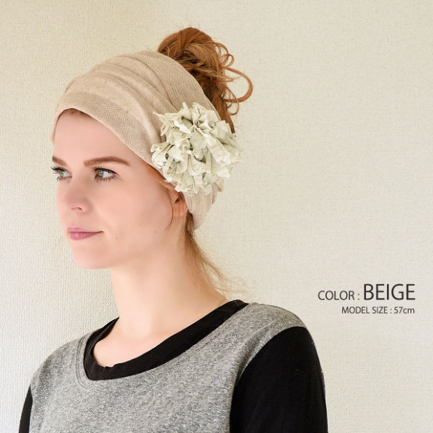 幅の広さとシャーリング加工のされたデザインは、 かぶるだけでヘアースタイルを選ばず、セットも簡単に仕上がります!! 海、山へのお出かけも楽しくなるヘアーアイテムです♪