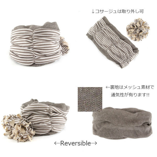 ベーシックカラーのボーダー柄とメッシュ素材のリバーシブルで どちらもコーディネートに馴染みやすい仕上がりに。