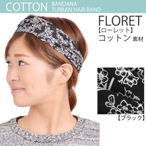 過去の取り扱い商品 『charm』コットンバンダナターバンヘアバンド■FLORET-black■ 2019年9月27日 by officialshop さっとかぶれて簡単楽々ヘアバンドタイプのバンダナ。 ゴムタイプなので伸縮性もありかぶりやすくアレンジも自由自在。 クシュっと縮めてカチューシャ風にかぶったり、生地を広げると後頭部まで広がり三角巾としても使えます。