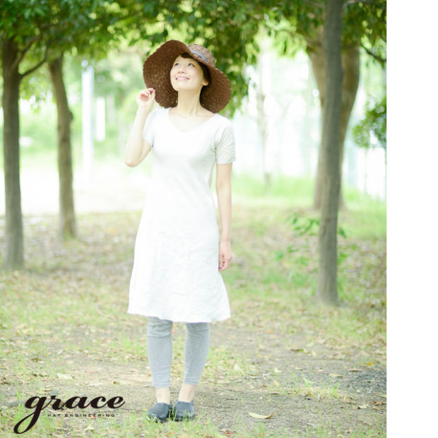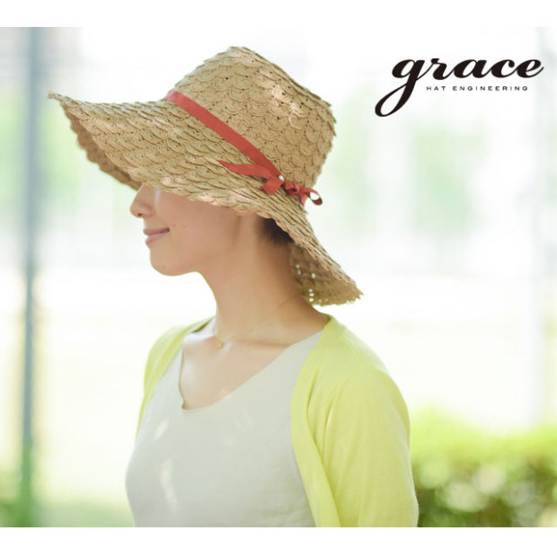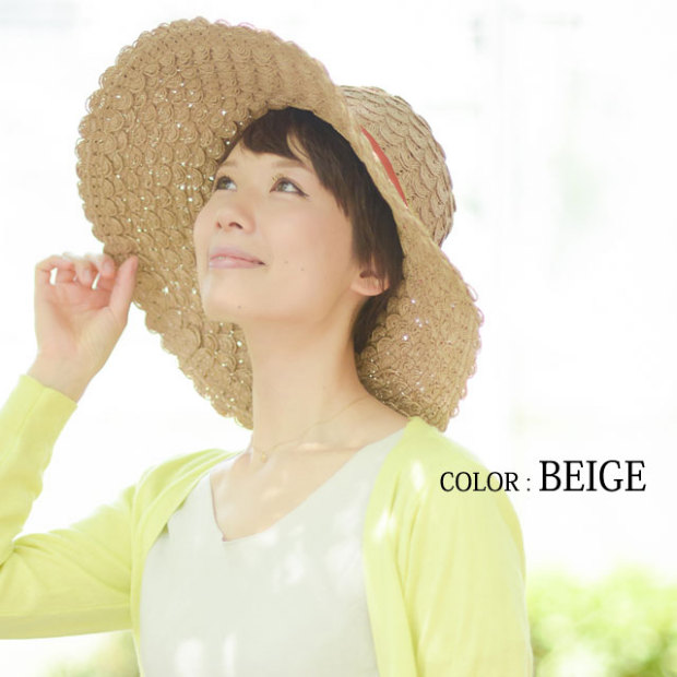 ペーパー素材を使い上品に仕上がったツバ広ハット。