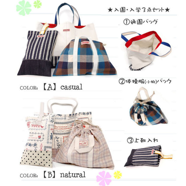体操服・上靴入れと必要なバッグが揃った3点セット。