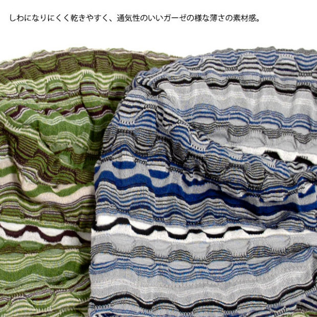 しわになりにくく乾きやすい素材。お洒落なデザインワッチ。 通気性のいいガーゼの様な薄さの素材感。