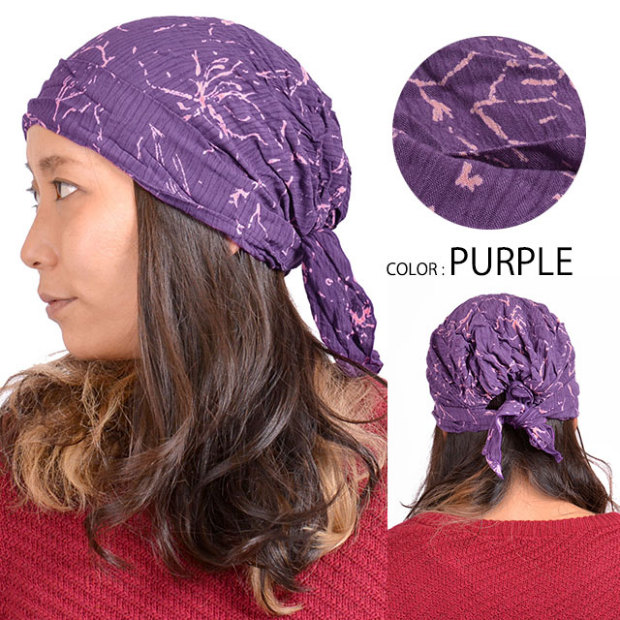 天然繊維のナチュラルさと上品な質感が特徴バンダナ帽子シリーズでは一番ゆったりとしたシルエット。
