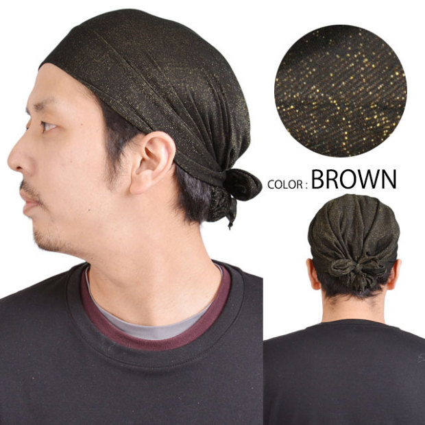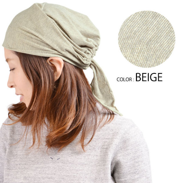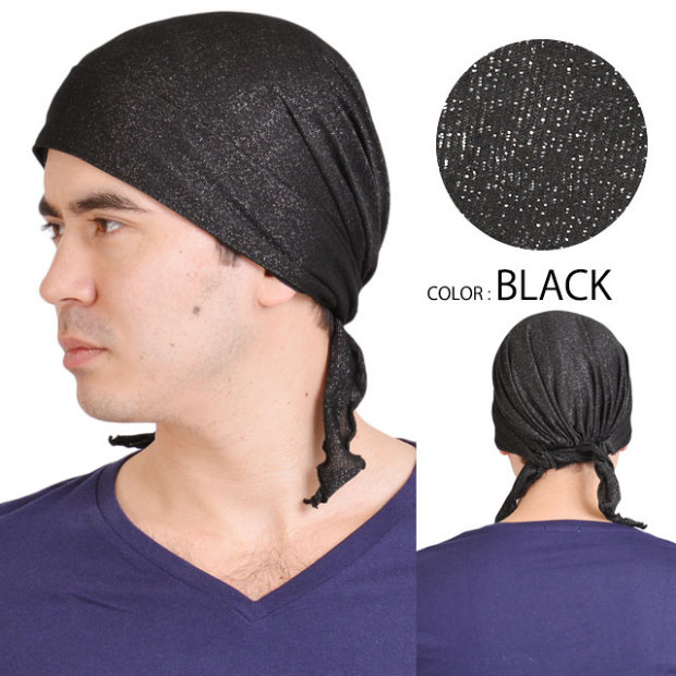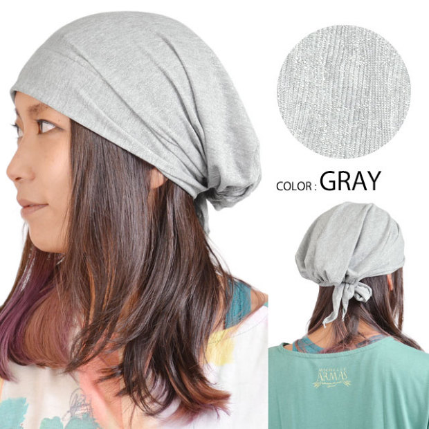 もちろんサイズもフリーサイズで頭の小さい方から大きい方までOK! ただかぶって後ろでくくるだけですので、 本当に簡単でお洒落なアイテムです。