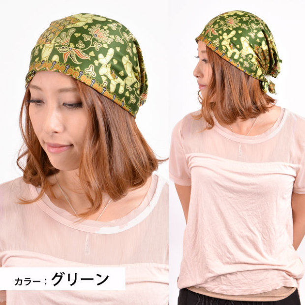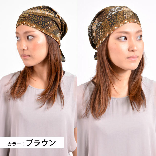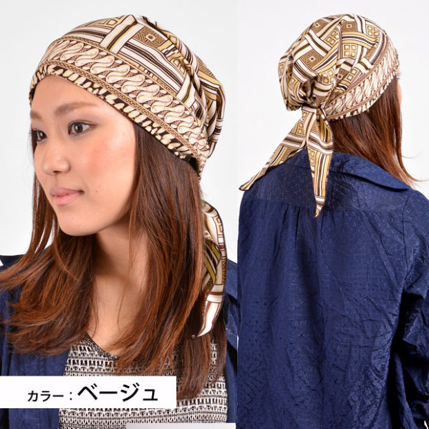 ただ被って後ろでくくるだけですので、本当に簡単でお洒落なアイテムです