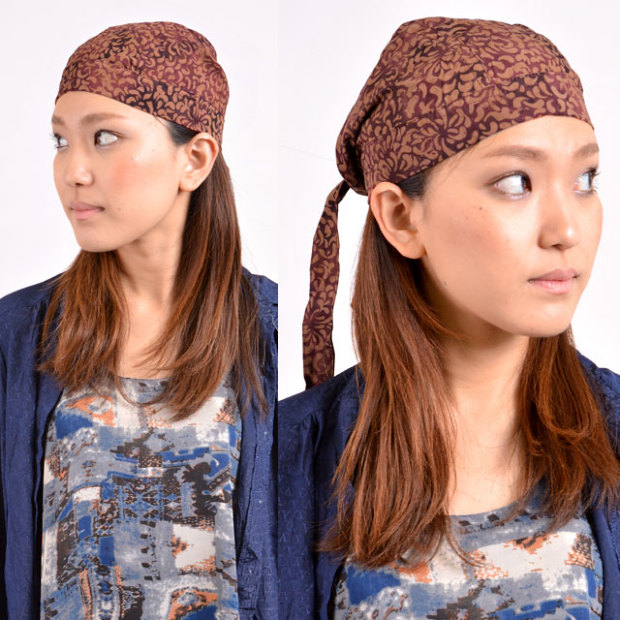 紐でむすんでしっかりとフィットバンダナキャップ。