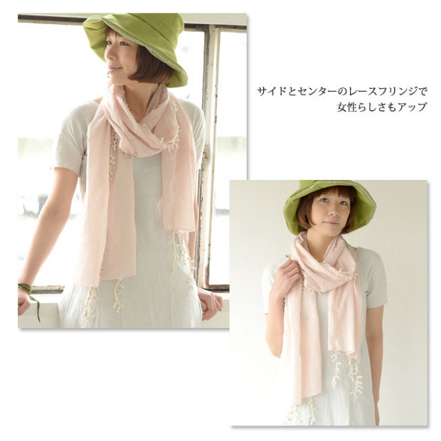 | 人気ブランドOrientよりサラっとした肌さわりで付け心地も柔らか♪ 服装を選ばずあわせやすさも◎使えるストール。 ガーゼの様な少し透ける素材が涼しげ♪ サイドとセンターのレースフリンジで女性らしさもUP↑↑ アフガン風に巻きつけたり、そのまま首から下げたり、 頭に巻きつけてスカーフターバンとしても使えます♪ アレンジ自由自在★お洒落女子には欠かせないアイテム。 |