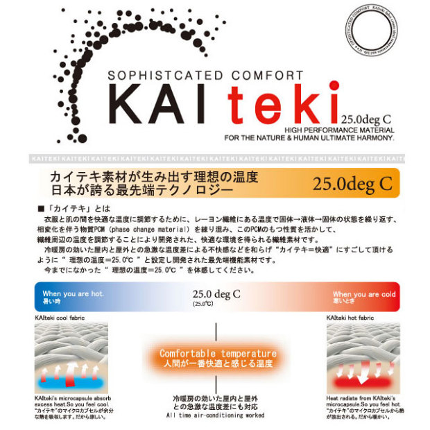 人間が一番快適と思える理想の温度=25.0℃と設定し開発された最先端機能素材です。