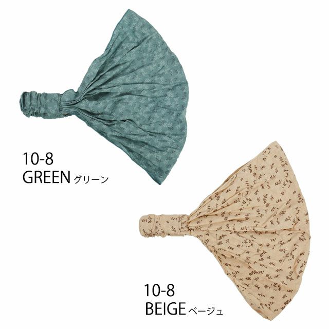 クシュっと縮めてカチューシャ風にかぶったり、生地を広げると後頭部まで広がり三角巾としても使えます。
