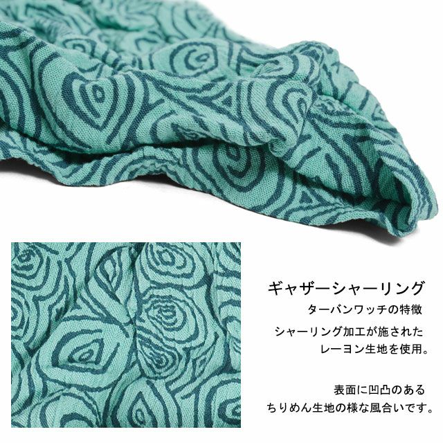 | 天然繊維のナチュラルさと上品な質感が特徴バンダナ帽子シリーズでは一番ゆったりとしたシルエット。 襟足部分にはギャザー加工を施しゴムを通してありますので、 レーヨン独特のシャーリング感・ドレープ感が 綺麗なシルエットを演出、被った時の形が決まります。 さらっとした肌さわりで、スポーツのウエアーとしても室内帽子としてもオススメ もちろんサイズもフリーサイズで頭の小さい方から大きい方までかぶれます。 |