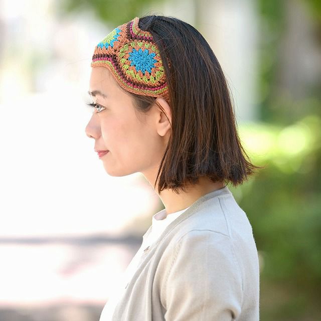 | 人気の手編みカチューシャシリーズに新たなデザインが仲間入り♪ カラフルなサークルモチーフに今回は、 これからの時期に使いやすいのカラー組み合わせ。 1点1点手編みで丁寧に仕上げられアップスタイルの後れ髪留め代わりにも、 カチューシャとしても使えます!! 後部部分はゴムが入ってますので手軽に被れるのも嬉しいですね♪ |