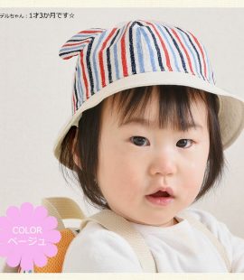 ベビー:FAMIくま耳ガーゼコットンキャップ