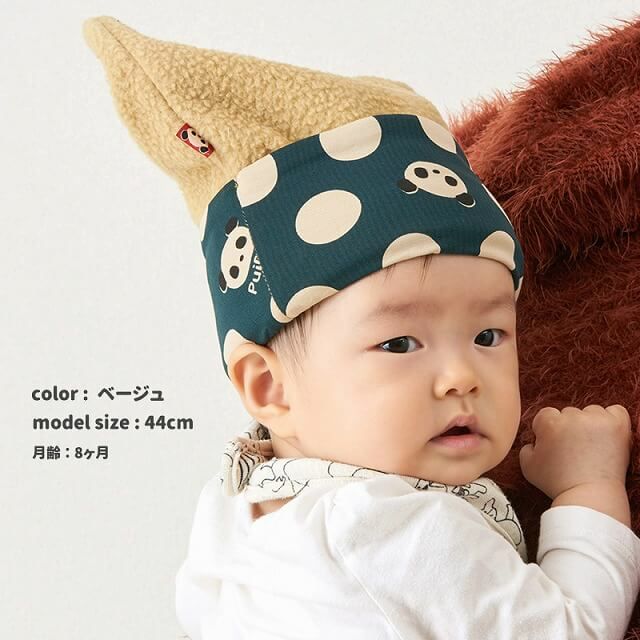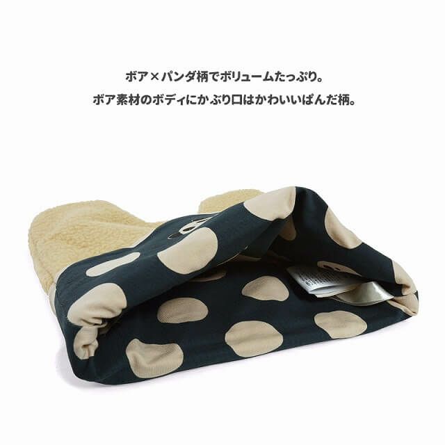ボア素材のボディにかぶり口はかわいいぱんだ柄。