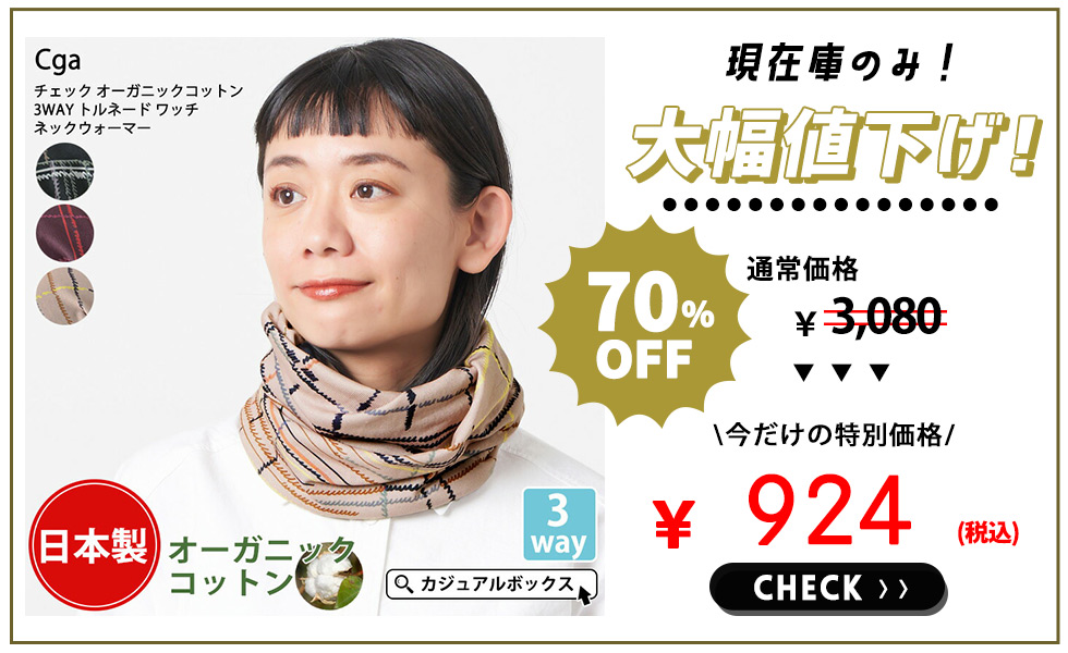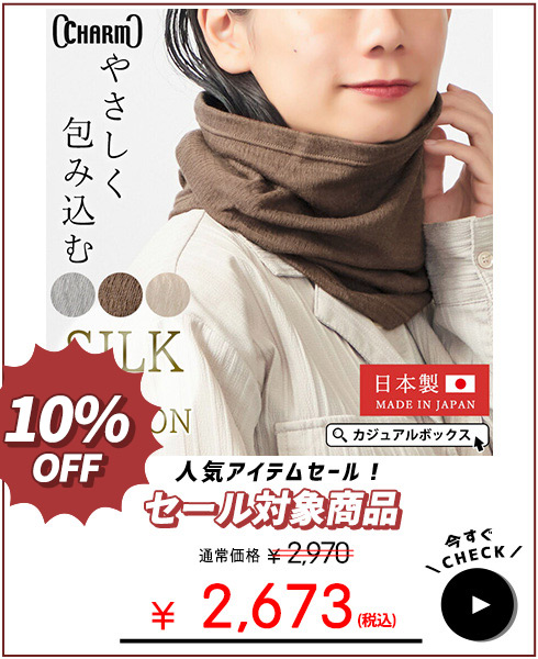 他の画像を見る NEW シルク コットン 【2025年秋冬新作】日本製 CHARM シルク コットン ロング ターバン ネックウォーマー 定価 ¥ 2,970 ¥ 2,673 税込 (0) お気に入りに登録する