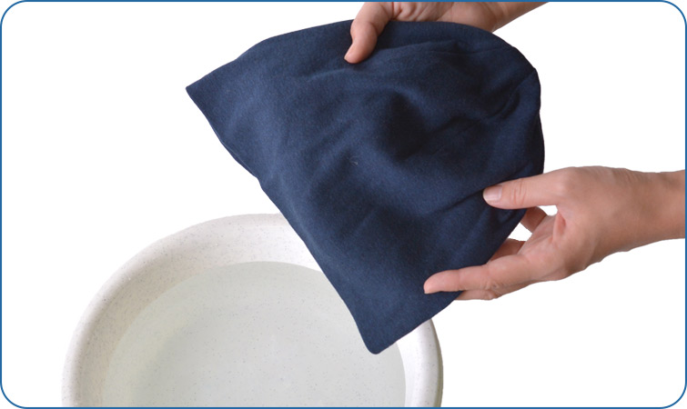 | 手のひらでやさしく押し洗いしたり、上に軽く持ち上げたりを数回繰り返します。 POINT!汚れがひどい場合は10分ほどつけておきます。 |