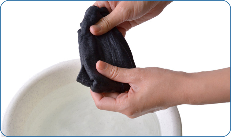 | ぬるま湯を張った洗面器に中性洗剤を使用量の目安通りに溶かします。 |