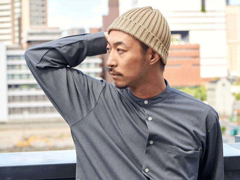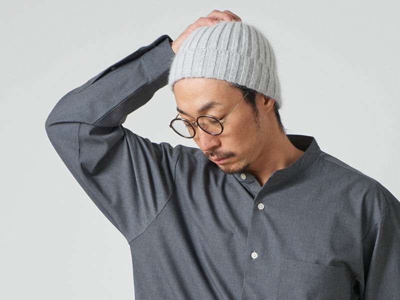 浅めにかぶることで表情がくっきり見えるので、すっきり爽やかな印象に。