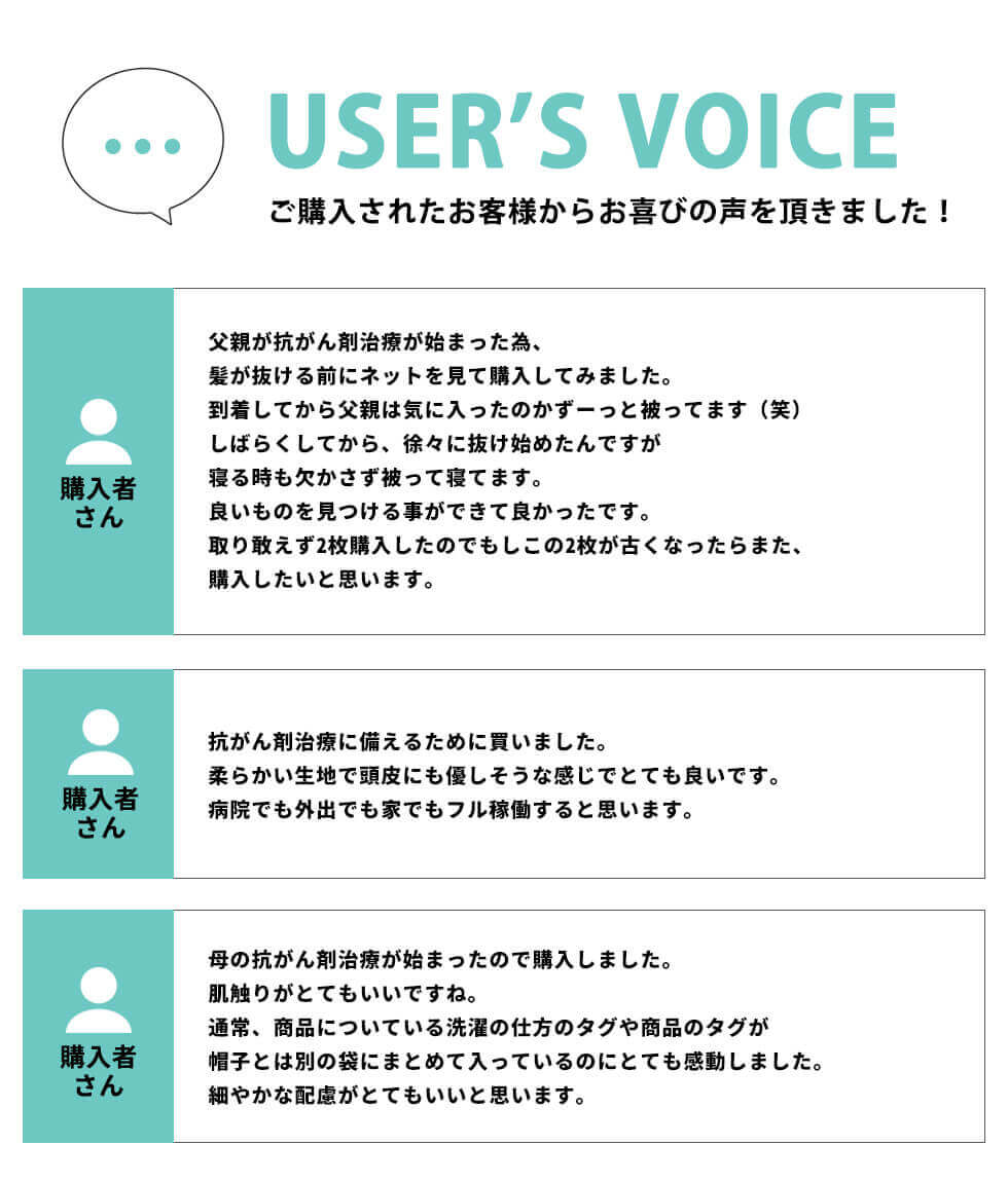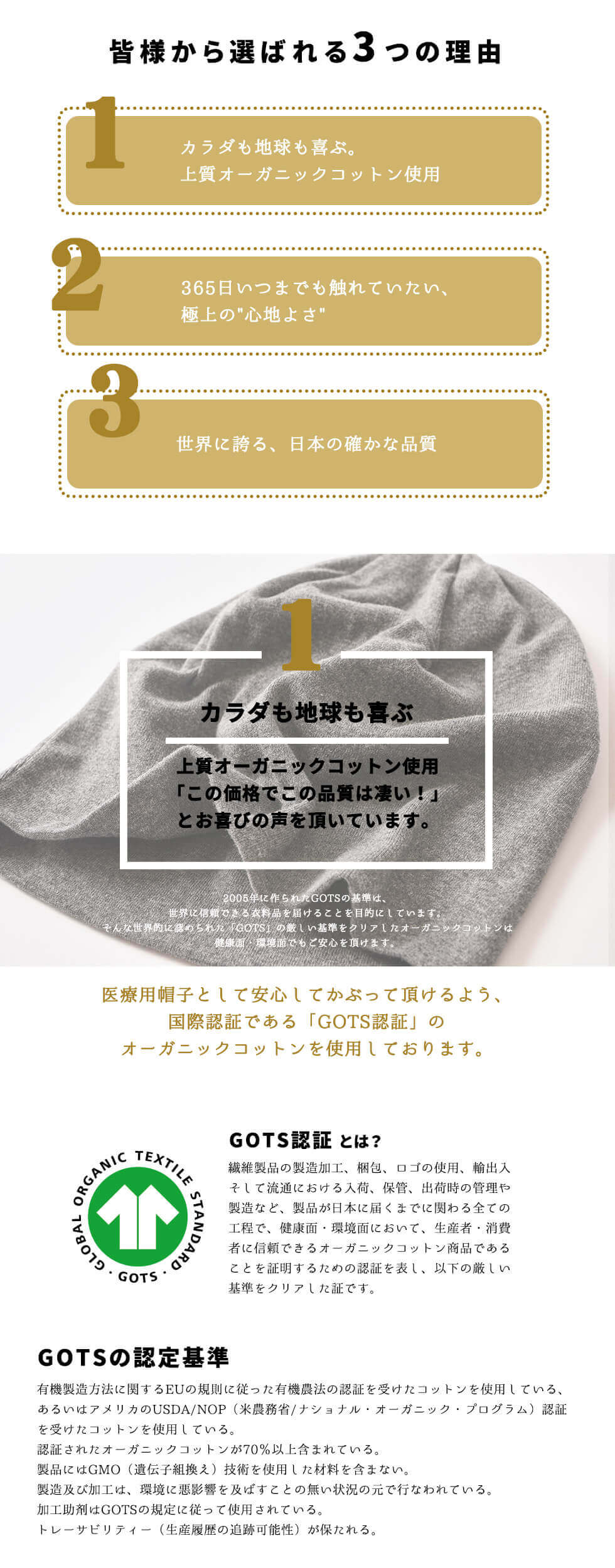 オーガニックコットンを使用しているので、お肌の弱い方や抗がん剤の副作用により、