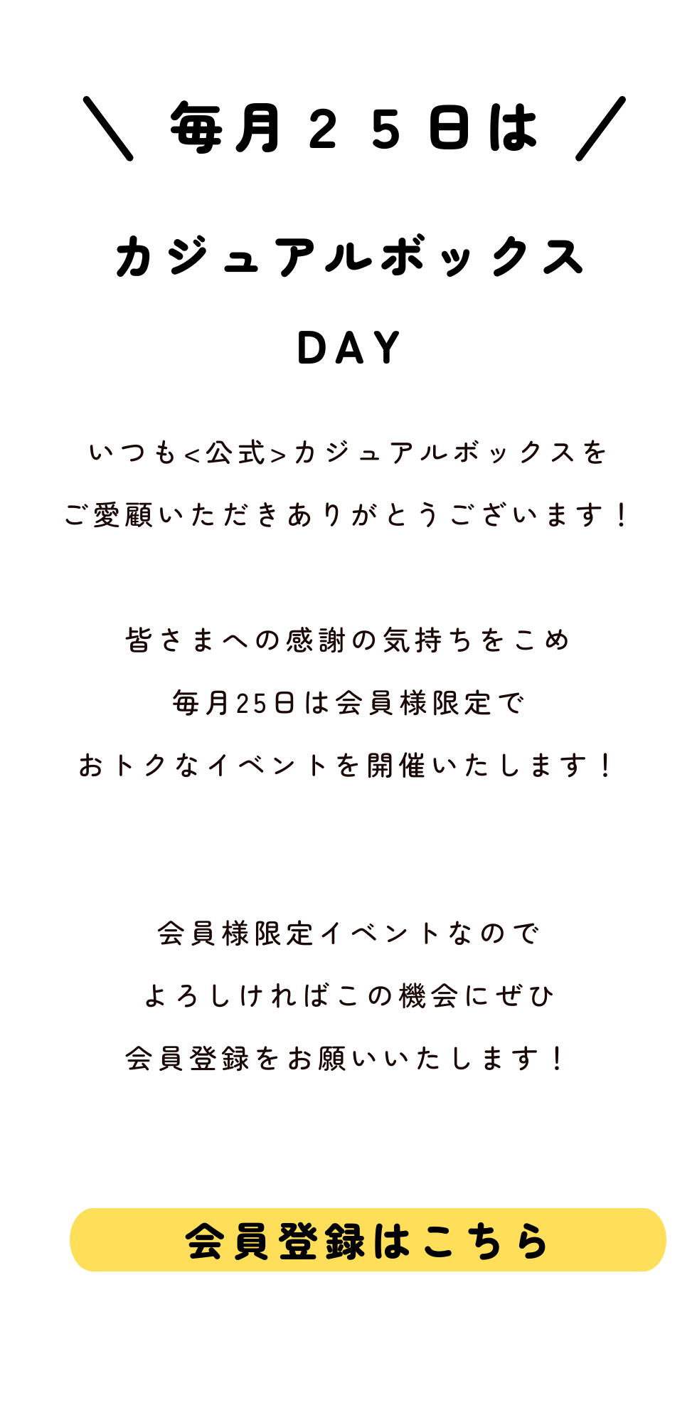 毎月25日はお得な日!会員様限定イベント!