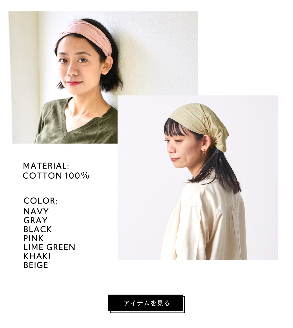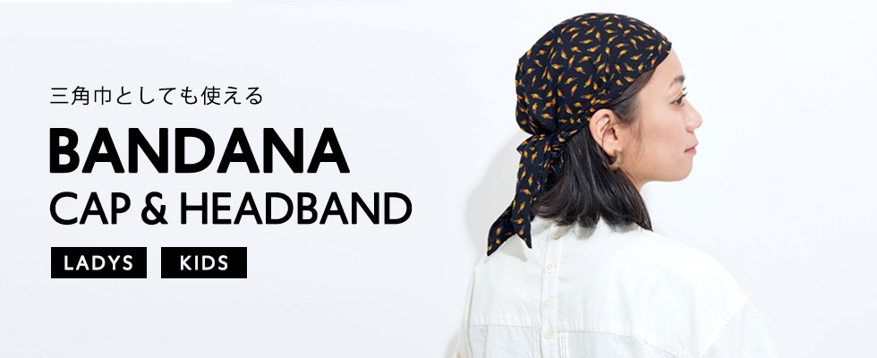 幅広く使えるバンダナキャップ、バンダナヘアバンド。