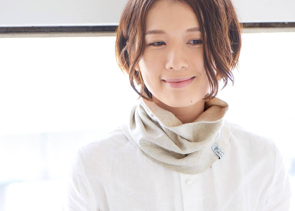 ネックウォーマーやスカーフで首を温め、血流を良くし、冷えを予防しましょう!