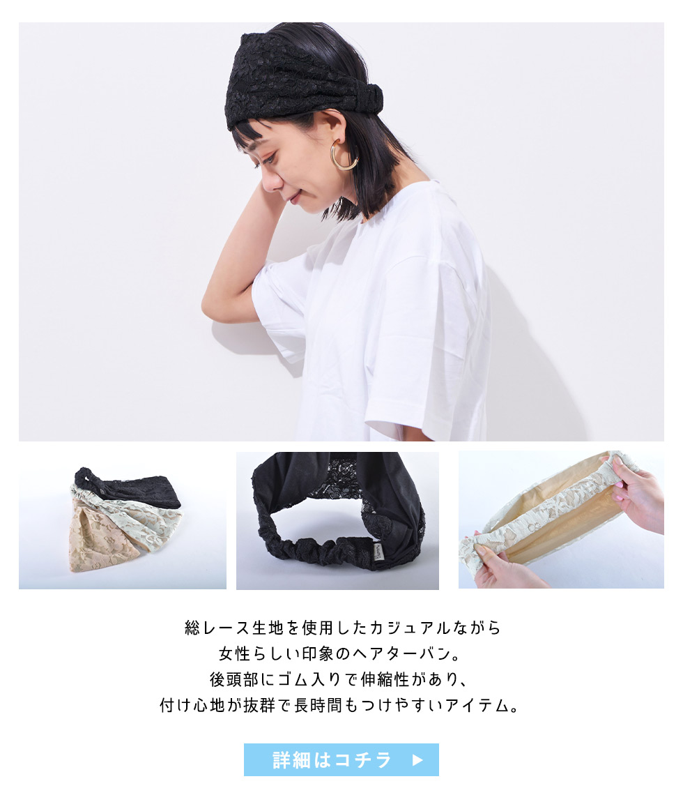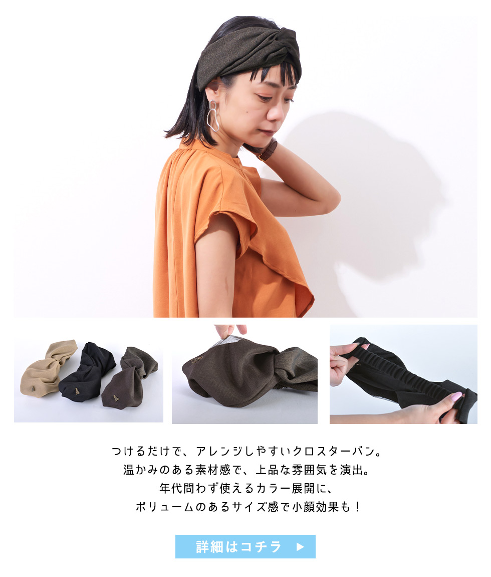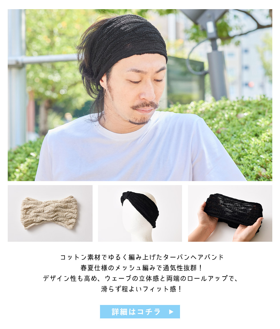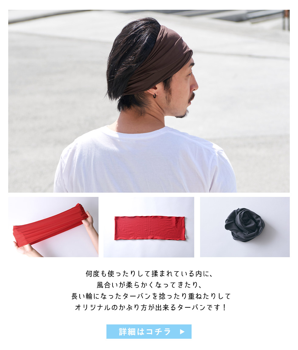 長さ約50センチとアレンジ自在のヘアバンド!ひねったり、巻いたり、お好みのフィット感で着用することができるアレンジターバンです。夏の家事のお供にもオススメです。